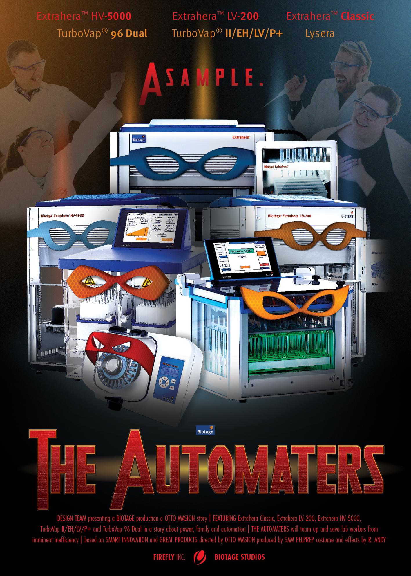 Life Science-företaget Biotage producerar och säljer labbutrustning som används inom t.ex miljöforskning, medicinindustrin och matproduktion. Biotage ville marknadsföra några av sina produktfamiljer och automation var huvudfokuset. Då kläcktes idéen att göra produkterna till superhjältar. I ett antal serierstrippar räddar hjälteprodukterna utsatta labbarbetare från kniviga situationer och visar upp automationens krafter och fördelar. Varje produktfamilj fick även sin egen filmaffisch inför släppet av nya serier. Här nedan kan du se den spännande historien om The Automaters. God läsning!